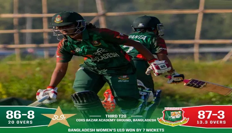 بنگلہ دیش ویمنز انڈر 19 نے پاکستان ویمنز انڈر 19 کو تیسرے ٹی ٹوئنٹی میچ میں 7 وکٹوں سے ہرادیا…