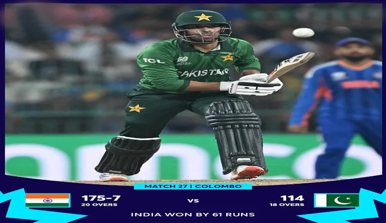 آئی سی سی ٹی ٹوئنٹی ورلڈکپ کے گروپ میچ میں بھارت نے پاکستان کو 61 رنز سے شکست دے کر…