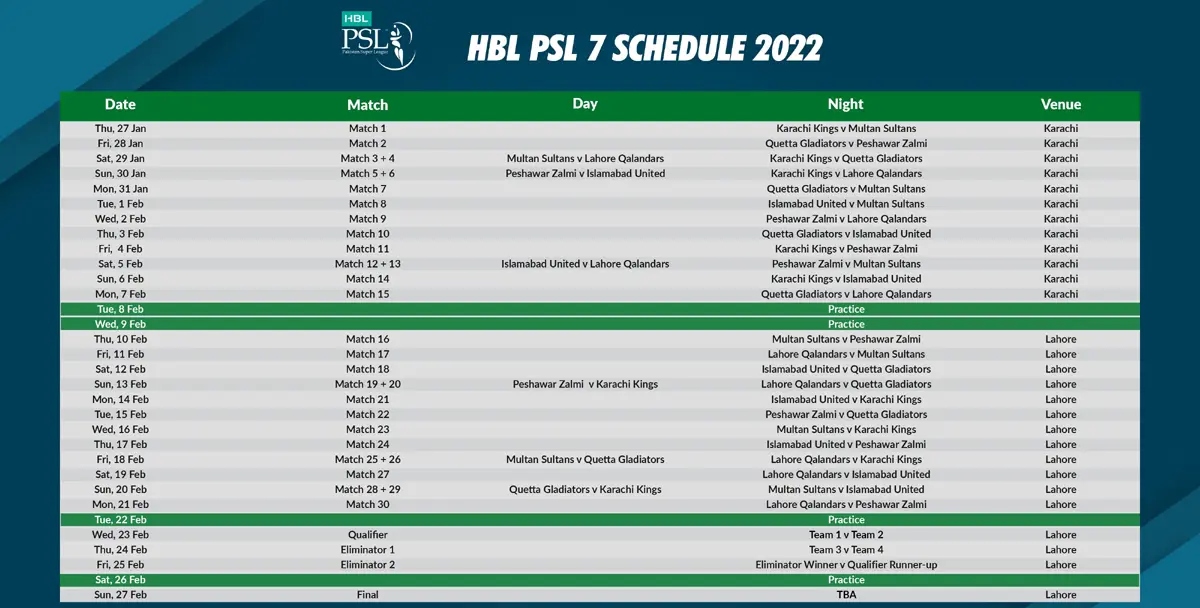 پاکستان سپر لیگ 2022 کا شیڈول جاری