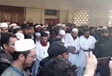 نمازِ جنازہ مفتی تقی عثمانی نے پڑھائی،گورنرسندھ کامران ٹیسوری ،مولانا فضل الرحمن،حافظ نعیم الرحمن سمیت لوگوں کی بڑی تعداد شریک ہوئی