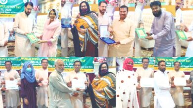 محکمہ بہبود آبادی خوشاب کے زیر اہتمام عالمی یوم آ بادی کے مو قع پر بیسٹ پرفارمنس ایوراڈ او سرٹیفیکٹس تقسیم کرنے کی تقریب
