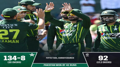پاکستان کرکٹ ٹیم بالآخر ناکامیوں کا سلسلہ توڑنے میں کامیاب، کیویز کو 5ویں ٹی ٹوئنٹی میں شکست