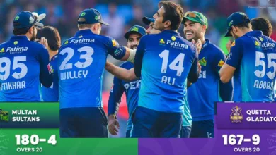 پاکستان سپر لیگ میں ملتان سلطانز نے کوئٹہ گلیڈی ایٹرز کو 13 رنز سے شکست دیکر ایونٹ میں چوتھی کامیابی…