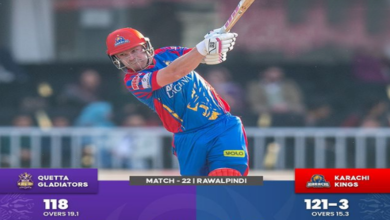 پاکستان سپر لیگ (پی ایس ایل) میں کراچی کنگز نے کوئٹہ گلیڈی ایٹرز کو 7 وکٹوں سے باآسانی شکست دے…