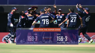 آئی سی سی ٹی 20 ورلڈ کپ کے گروپ ’اے‘ کے میچ میں امریکا نے پاکستان کو سپر اوور میں…