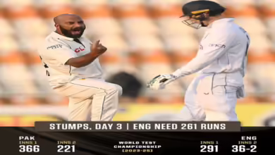 تین ٹیسٹ میچوں کی سیریز کے دوسرے میچ کے تیسرے روز کےکھیل کے اختتام پر انگلینڈ نے دوسری اننگز میں…