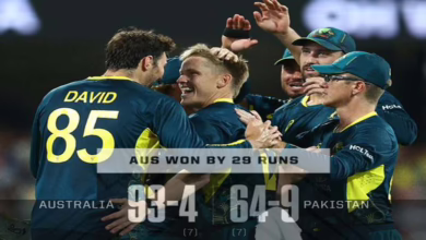 آسڑیلیا نے پہلے ٹی ٹوئنٹی میں پاکستان کو 29 رنز سے شکست دیدی