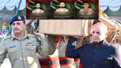 پی ٹی آئی کے شرپسندوں کے ہاتھوں شہید رینجرز اہلکاروں کی نماز جنازہ ادا، وزیراعظم اورآرمی چیف کی شرکت
