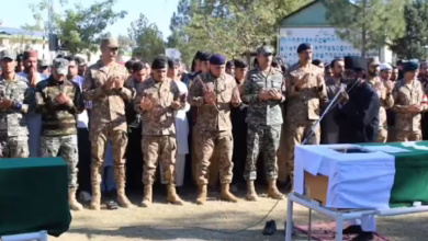 جام شہادت نوش کرنے والے پاک فوج کے چھ بہادر جوانوں کی نماز جنازہ پورے فوجی اعزاز کے ساتھ ادا