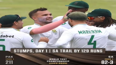 پہلے کرکٹ ٹیسٹ کے پہلے روز کھیل کے اختتام پر جنوبی افریقہ نے پہلی اننگز میں 3 وکٹ پر 82…