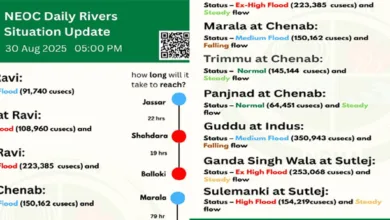 - 31 اگستقومی دریائے چناب سے 900,000 کیوسک کا بہاؤ گزرنے سے جھنگ میں سیلابی صورتحال تشویشناکجھنگ میں دریائے چناب میں تقریباً نو لاکھ کیوسک کا ریلا گزر رہا ہے جس سے انتہائی تشویشناک صورتحال پیدا… مزید پڑھیے