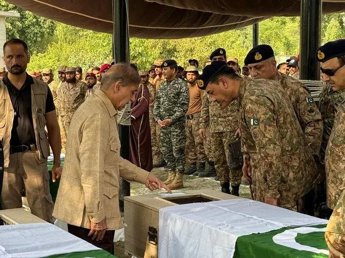 وزیرِ اعظم اور فیلڈ مارشل نے جنوبی وزیرستان آپریشن میں شہید ہونے والے 12 بہادر جوانوں کی نمازِ جنازہ میں بھی شرکت کی۔وزیرِ اعظم اور فیلڈ مارشل نے سی ایم ایچ بنوں میں زخمیوں کی عیادت بھی کی، کور کمانڈر پشاور نے علاقے کی سیکیورٹی صورتِ حال پر تفصیلی بریف کیا۔سیکیورٹی ذرائع کے مطابق اس موقع پر وزیرِ اعظم شہباز شریف نے کہا کہ دہشت گردی کے واقعات میں افغان باشندے شامل ہیں، دہشت گرد افغانستان سے آ کر پاکستان میں دہشت گردی کر رہے ہیں، غیر قانونی طور پر پاکستان میں مقیم افغان باشندوں کا جلد انخلاء انتہائی اہم ہے۔