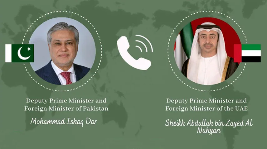 پاکستان اور متحدہ عرب امارات نے قریبی روابط قائم رکھنے پر اتفاق کیا ہے۔یہ اتفاق رائے نائب وزیراعظم اور وزیر خارجہ اسحق ڈار اور متحدہ عرب امارات کے ان کے ہم منصب شیخ عبداللہ بن زید النہیان کے درمیان ٹیلیفون پر گفتگو میں ہوا۔فریقین نے باہمی دلچسپی کے دوطرفہ او ر کثیر جہتی امور کے علاوہ حالیہ علاقائی اور عالمی صورتحال پر بھی تبادلہ خیال کیا۔