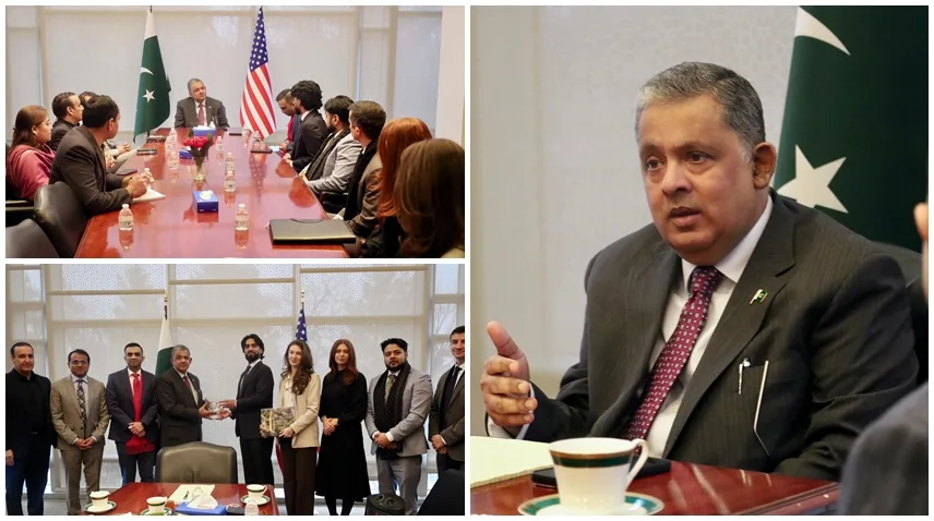انہوں نے یہ بات واشنگٹن ڈی سی میں ییل اسکول آف مینجمنٹ کے ایک وفد سے ملاقات کے دوران کہی۔ سفیر کا کہنا تھا کہ دونوں ممالک کی قیادت دو طرفہ تعلقات کو معاشی تعاون پر استوار کرنے کے لیے پُرعزم ہے، اور پاکستان سرمایہ کاری کے لیے سازگار اور محفوظ ماحول فراہم کرنے کے لیے پوری طرح کوشاں ہے۔