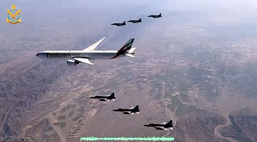 مہمان نوازی اور بھائی چارے کے شاندار مظاہرے میں پاک فضائیہ کے طیاروں نے پاکستانی فضائی حدود میں داخل ہوتے ہی رسمی ایئر ایسکارٹ فراہم کیا۔