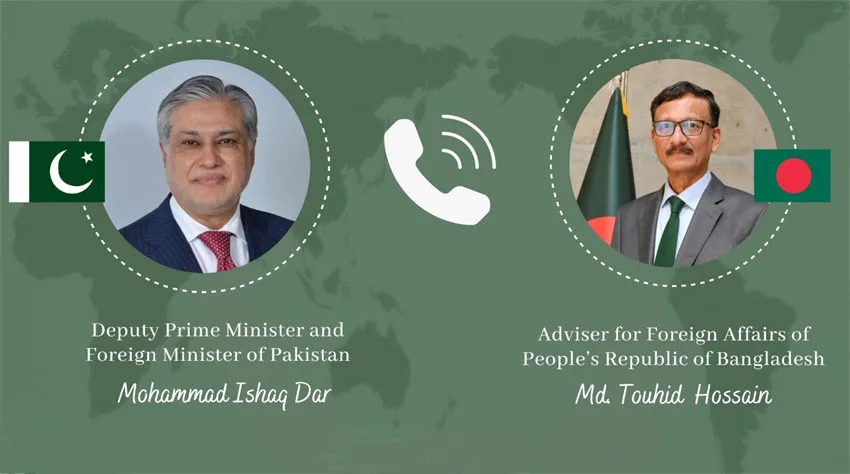 دوسری جانب نائب وزیراعظم اسحاق ڈار نے بنگلہ دیش کے خارجہ امور کے مشیر محمد توحید حسین سے ٹیلیفون پر بات چیت کی، جس میں پاکستان اور بنگلہ دیش کے دوطرفہ تعلقات کا جائزہ لیا گیا۔ گفتگو میں تجارت، اقتصادی تعاون اور مختلف شعبوں میں اشتراک کو فروغ دینے پر اتفاق کیا گیا۔