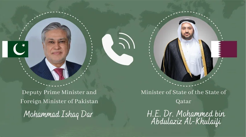 نائب وزیراعظم اور وزیر خارجہ اسحاق ڈار نے قطر کے وزیر مملکت ڈاکٹر محمد بن عبدالعزیز الخلیفی اور بنگلہ دیش کے خارجہ مشیر محمد توحید حسین سے علیحدہ علیحدہ ٹیلیفونک رابطے کیے، جن میں دوطرفہ تعلقات، علاقائی صورتحال اور عالمی امور پر تبادلۂ خیال کیا گیا۔