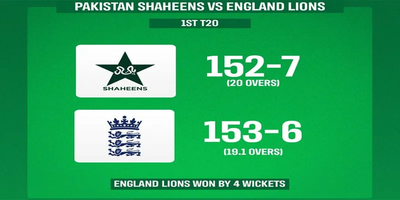 انگلینڈ لائنز نے پہلے ٹی ٹوئنٹی میچ میں پاکستان شاہینز کو سنسنی خیز مقابلے کے بعد چار وکٹوں سے شکست دے کر سیریز میں برتری حاصل کر لی۔