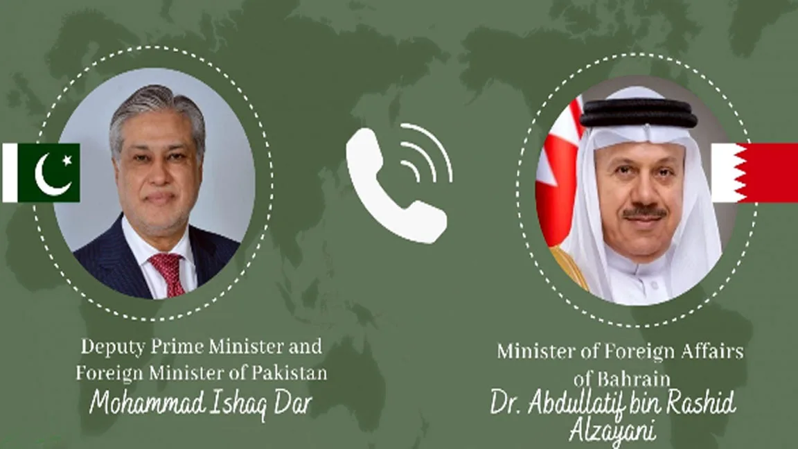 نائب وزیرِاعظم اور وزیرِ خارجہ سینیٹر محمد اسحاق ڈار نے آج مملکتِ بحرین کے وزیرِ خارجہ ڈاکٹر عبداللطیف بن راشد الزیانی سے ٹیلی فون پر گفتگو کی، جس میں خطے میں تیزی سے بدلتی ہوئی صورتحال پر تبادلۂ خیال کیا گیا۔