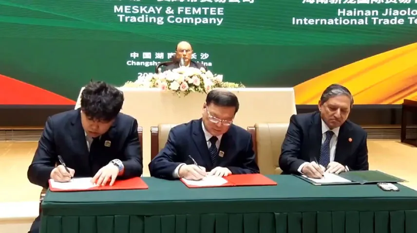 چائے کے شعبے سے متعلق تیسری مفاہمتی یادداشت پرMESKAY & FEMTEE ٹریڈنگ کمپنی، Hunan Tea Group اور Jiaolong International Technology کے درمیان صنعت کے تمام شعبوں میں تعاون کے فروغ کے لیے دستخط کیے گئے، جس کا مقصد دونوں ممالک میں چائے کی صنعت کی ترقی اور اقتصادی، تجارتی اور عوام کے درمیان تعلقات کو مضبوط کرنا ہے۔