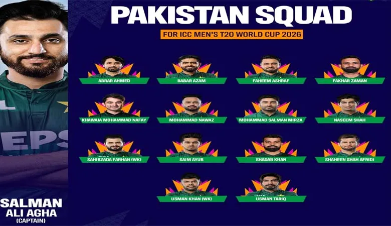 پاکستان نے ٹی ٹونٹی ورلڈ کپ 2026 کے لیے 15 رکنی سکواڈ کا اعلان کر دیا