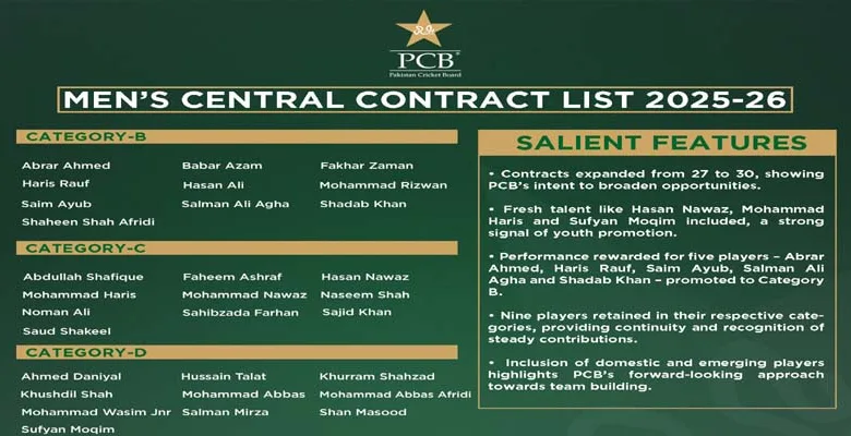 کرکٹرز کے سینٹرل کنٹریکٹس کا اعلان، کوئی کرکٹر کیٹگری اے میں شامل نہیں