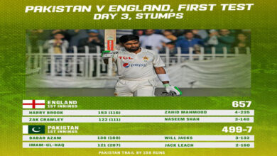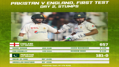 پاکستان اور انگلینڈ کے درمیان راولپنڈی میں جاری تین ٹیسٹ میچوں کی سیریز کے پہلے ٹیسٹ میچ کے دوسرے روز…