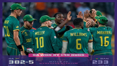 آئی سی سی کرکٹ ورلڈکپ 2023ء کے 23 ویں میچ میں جنوبی افریقہ نے بنگلادیش کو 149 رنز سے بآسانی…