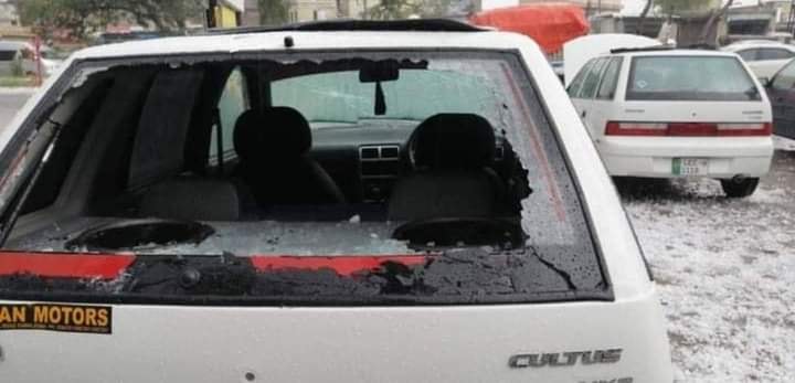 راولپنڈی اور اسلام آباد میں بارش اور اولے برسنے سے گاڑیوں کے شیشے ٹوٹ گئے۔