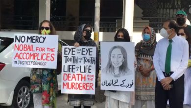 نور مقدم قتل کیس،عدالت کے باہر احتجاجی مظاہرہ