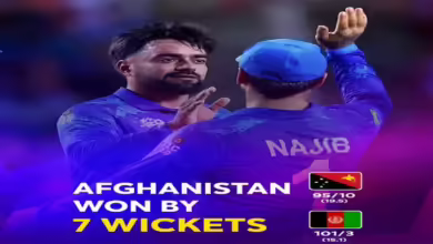 ٹی ٹوئنٹی ورلڈ کپ کے 29 ویں میچ میں افغانستان نے پاپوا نیو گنی کو 7 وکٹ سے شکست دے…